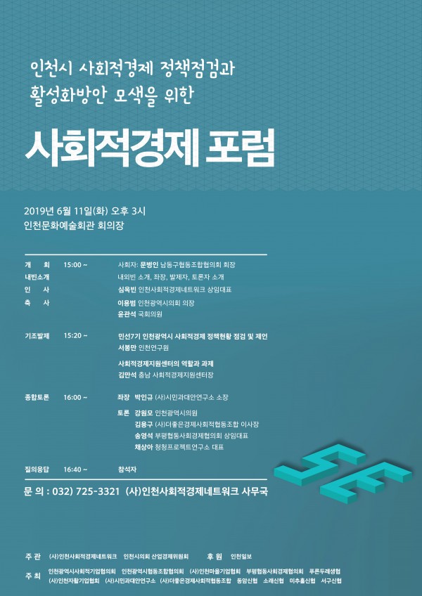 사회적경제 정책점검과 활성화방안 모색을 위한 사회적경제 포럼 페이지 정보 작성자 관리자 작성일19-06-07 14:53 조회2,815회 댓글0건 이전글 다음글 목록 본문 사회적경제 정책점검과 활성화방안 모색을 위한 사회적경제 포럼 댓글목록 등록된 댓글이 없습니다. 이전글 다음글 목록