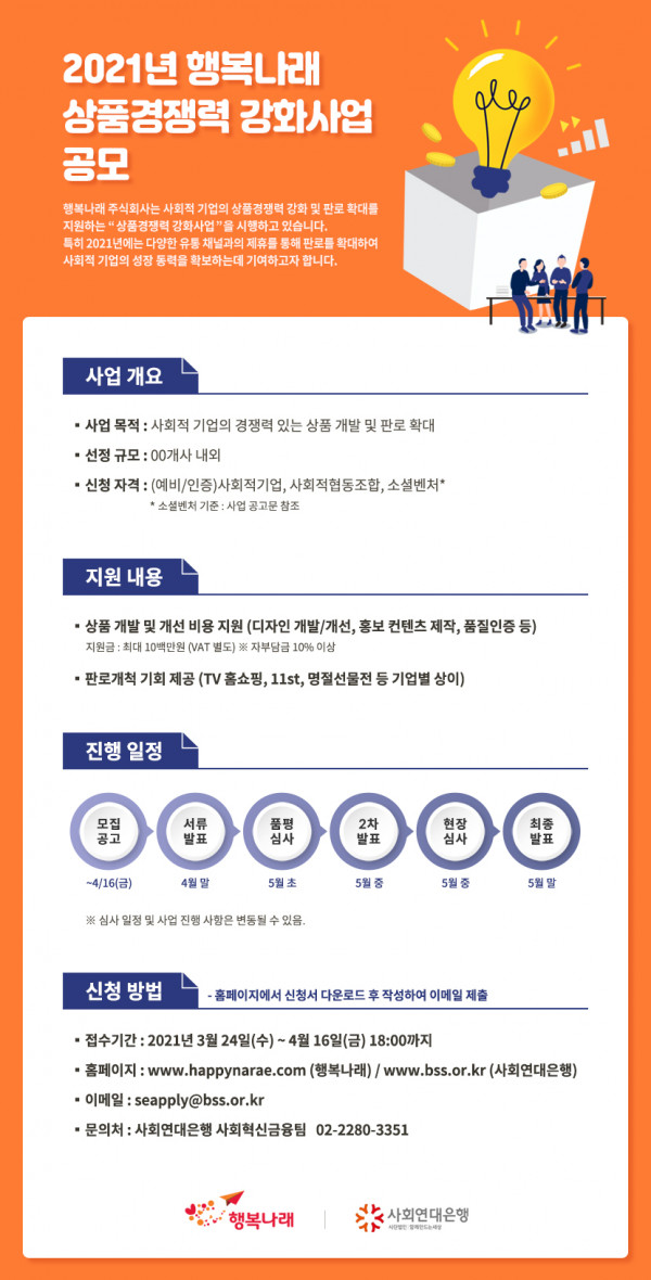 - 사업명칭 : 2021년 행복나래 상품경쟁력 강화사업