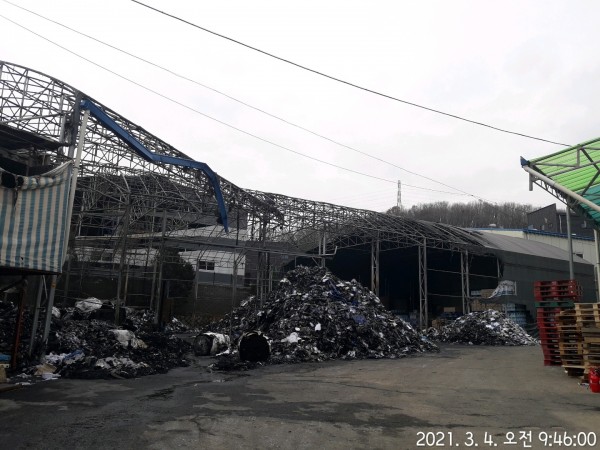 윤기상 대표는 총 4개동 중 2개동이 전소되었는데 이 공장은 임대공장으로 3월말 만료되는 곳으로 폐기처리하고 신규로 변상예정이라고 합니다.