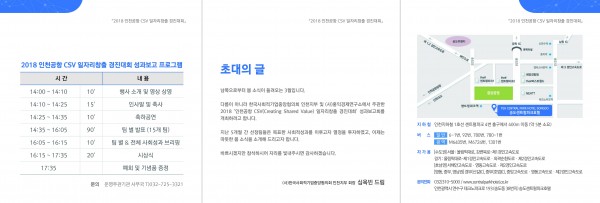 - '2018 인천공항 CSV 일자리창출 경진대회'에 관심이 있는 시민 누구나 참여 가능신 열려있는 성과보고회입니다. 참여를 희망하시다면 아래 링크를 통하여 사전 접수 후 성과보고회를 함께 누리시면 감사하겠습니다.