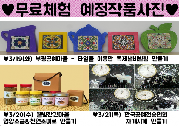 인천광역시사회적기업 전시판매장(쏠쏠마켓)에서 3월 무료체험 행사를 실시합니다.