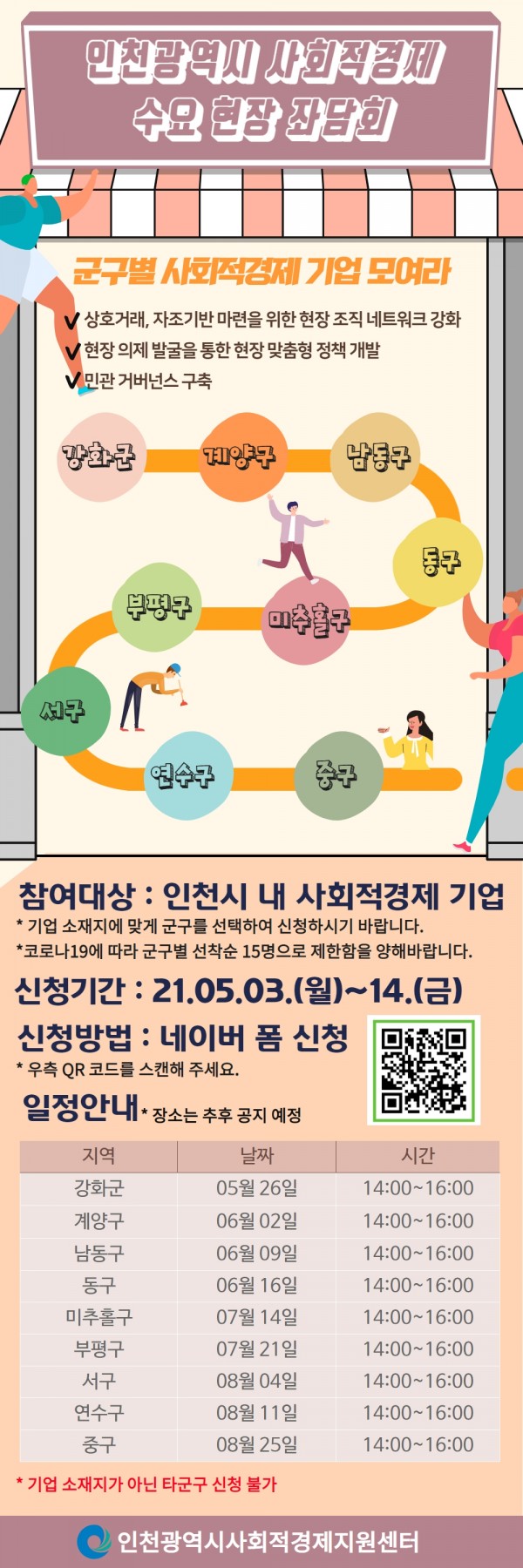 5월~8월 동안 인천시 내 각 군구별 사회적경제 기업 좌담회를 진행하고자 합니다.