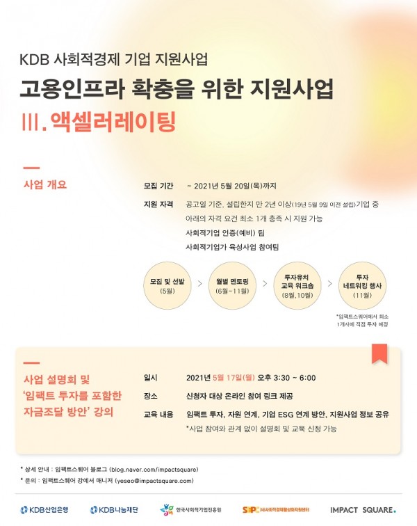 ※ 사업 설명회 및 ‘임팩트 투자를 포함한 자금조달 방안’ 온라인 교육신청: https://forms.gle/ArzUFRYRMMXB5g77A