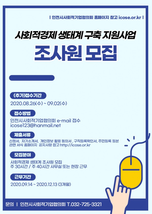 [채용] 사회적경제 지역생태계 구축 지원사업 조사원 추가 모집