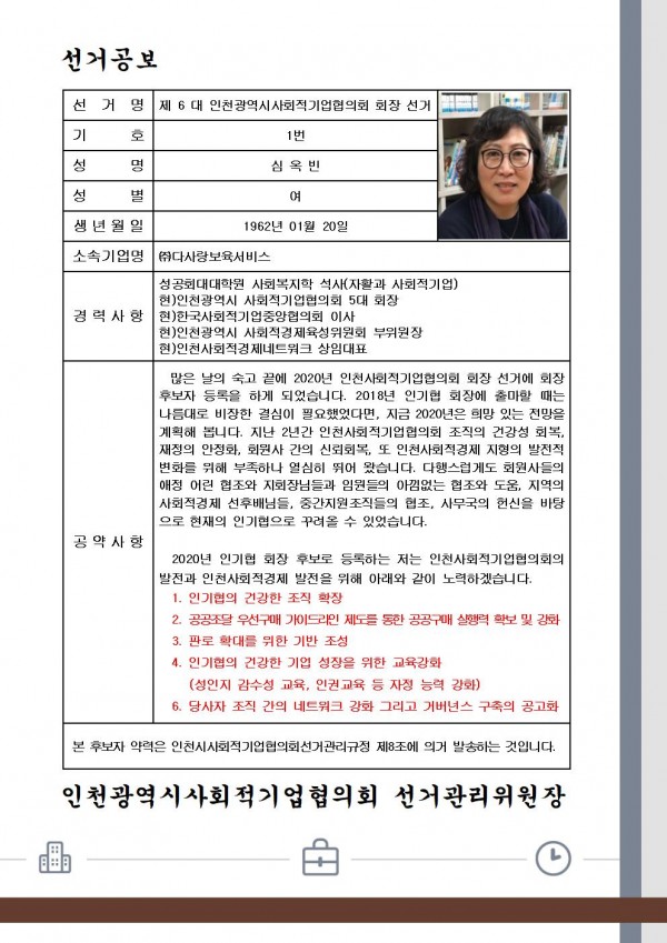 [인기협공고]제6대 후보자 공고 및 후보자 공보 페이지 정보 작성자 관리자 작성일20-02-13 16:56 조회2,169회 댓글0건 이전글 다음글 목록 본문 [인기협공고]제6대 후보자 공고 및 후보자 공보 댓글목록 등록된 댓글이 없습니다. 이전글 다음글 목록