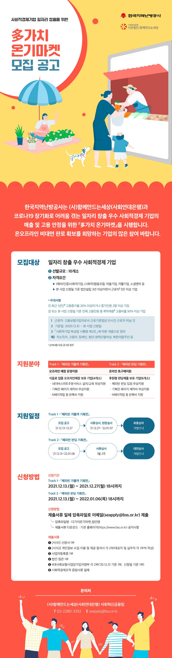 사)함께만드는세상(사회연대은행)은 코로나19 장기화로 어려움 겪는 일자리 창출 우수 사회적경제 기업의 매출 및 고용 안정을 위한 「多가치 온기마켓」을 시행합니다.