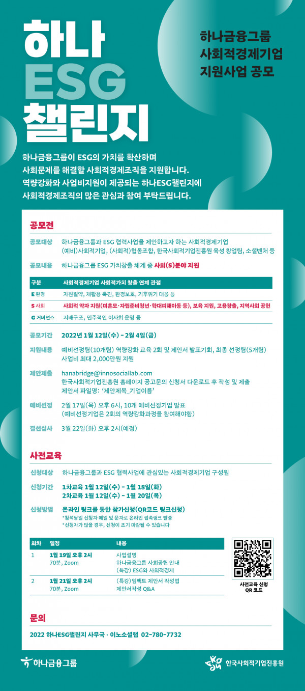 하나ESG 챌린지 참여기업 모집 (~2/4)