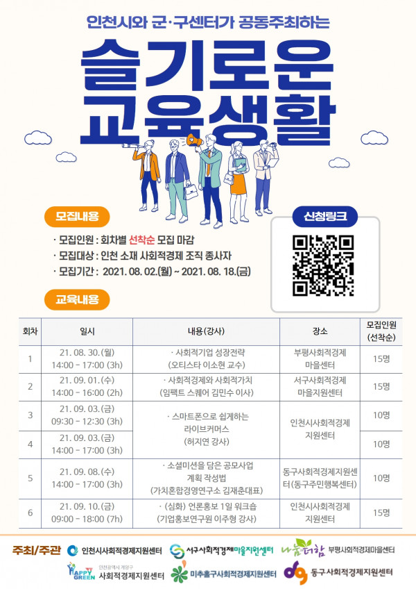 ✔인천시 내 사회적경제조직 종사자를 대상으로 꼭 필요한 교육을 모아모아 진행합니다!