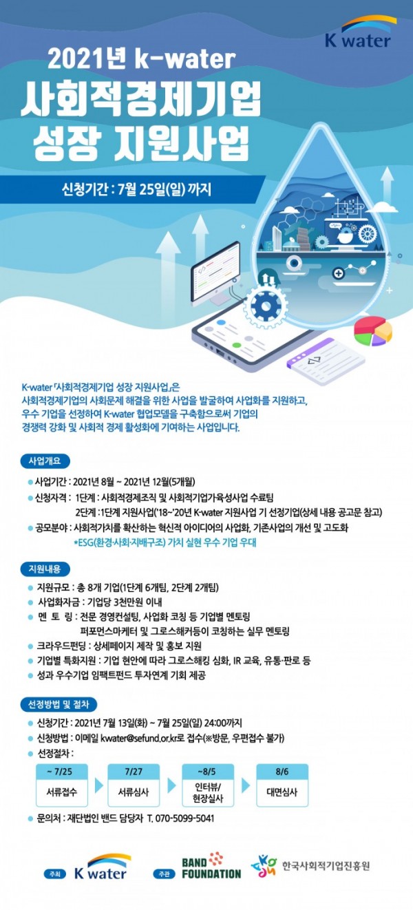 2021년 K-water 「사회적경제기업 성장 지원사업」 모집 (~7.25.)